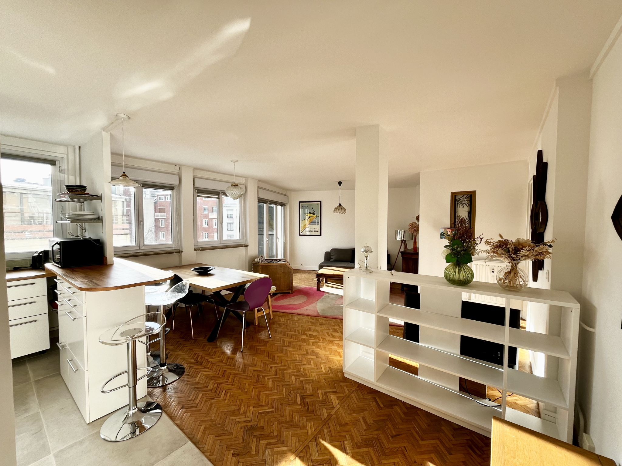 Dans un immeuble semi-récent, au 3ème étage avec ascenseur un bel appartement meublé traversant 3 pièces de 65,15 m² comprenant une entrée, un salon-salle à manger donnant sur un balcon plein sud, une cuisine ouverte aménagée et équipée ( réfrigérateur, hotte, four, plaque de cuisson, lave-vaisselle ), 2 chambres avec rangements, une salle de bains (lave-linge) et un wc séparé. Chauffage et eau chaude collectifs. Bon état. Proche des commerces et transport (A 5 min a pieds du Metro Jean-Jaurès ligne 10 et A 10 min à pieds du Metro Marcel Sembat ligne 9). Parking dans la cour de l'immeuble. Disponible de suite !