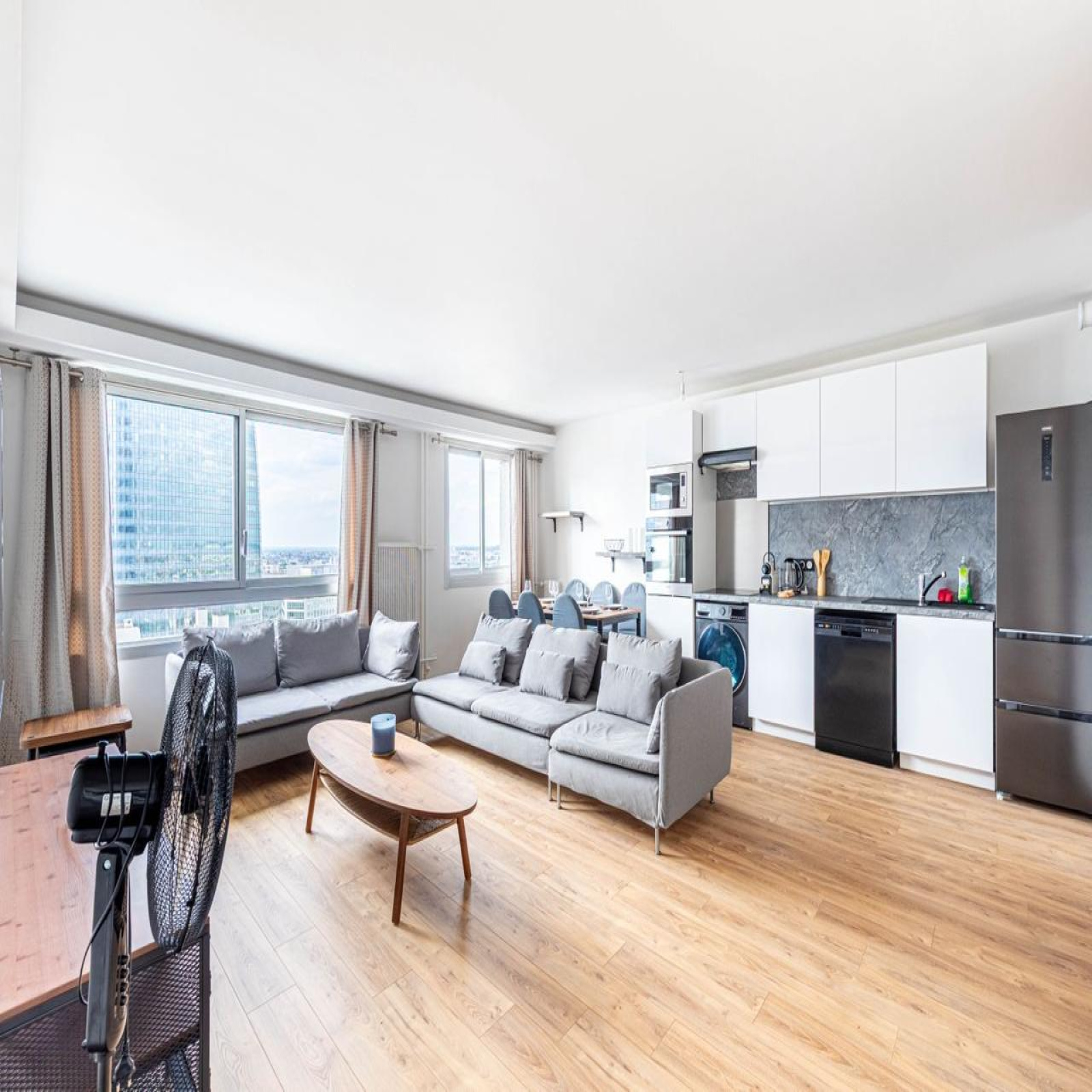 Situé au sein de la résidence Gambetta, un bel appartement meublé Refait à neuf de 4 pièces d'une surface de 81 m², situé au 21e étage avec ascenseurs comprenant une entrée avec rangements, un grand séjour/salle à manger avec une cuisine ouverte aménagée et équipée (Hotte, four, plaque de cuisson, lave-vaisselle, réfrigérateur, lave-linge, micro-onde), 3 chambres, 1 salle d'eau avec wc, une 2ème salle d'eau et un wc séparé.Un cellier complète ce bien. Vue dégagée. Calme et Lumineux. Chauffage et eau chaude collectifs. A proximité de la Défense ( 10 min à pieds du RER A, Transilien E & L, Metro ligne 1 et Tramway T2). Disponible de suite !