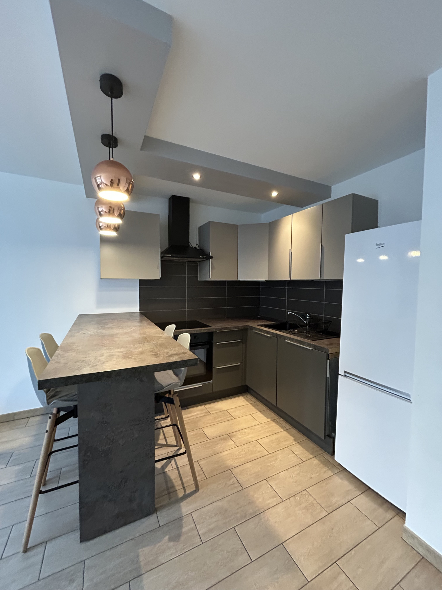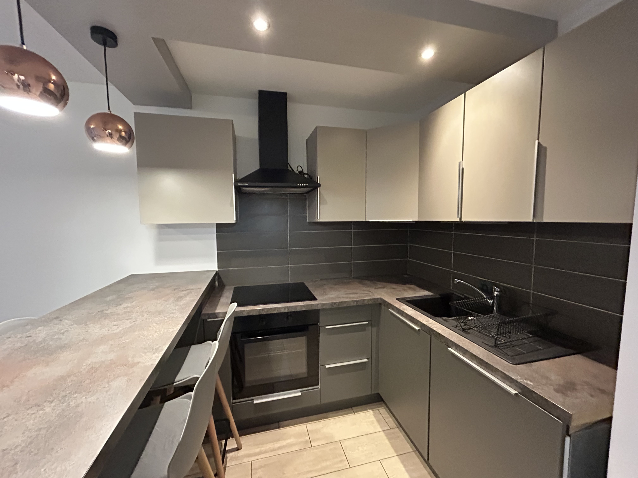 Situé en rez-de-chaussée d’un immeuble récent et sécurisé, bel appartement meublé de 58 m² comprenant une entrée, une cuisine ouverte aménagée et entièrement équipée (plaque de cuisson, hotte, réfrigérateur, four, lave-vaisselle), deux chambres, une salle de bains et des WC séparés. À proximité de La Défense et de la gare de Puteaux (lignes L, U et tramway T2). Clair et calme. Disponible de suite !