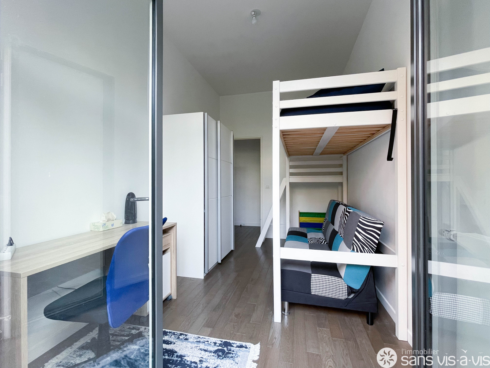 Les chambres, le séjour ainsi que la cuisine donnent sur une vaste terrasse de 43 m2 exposée Sud-Ouest.