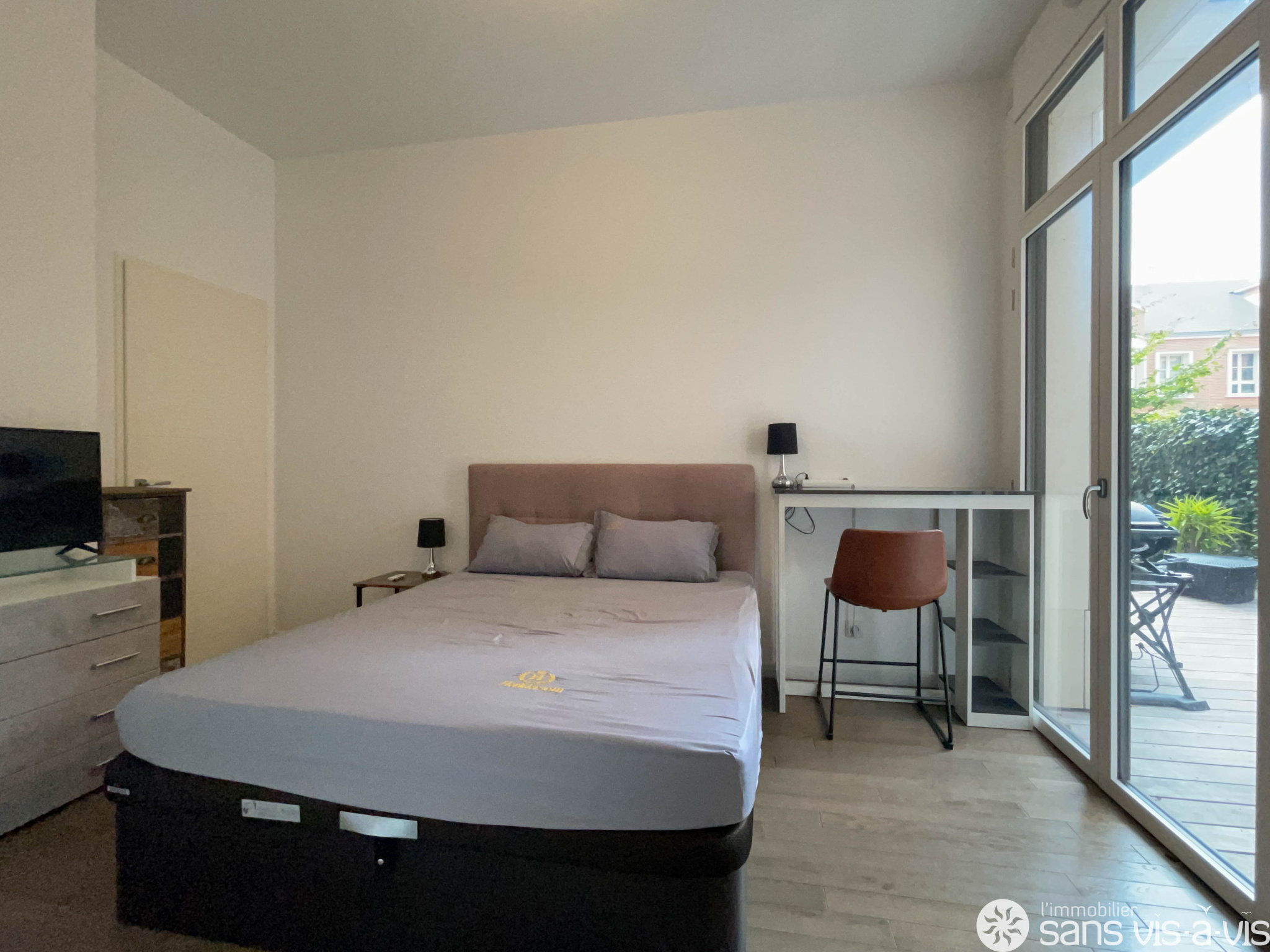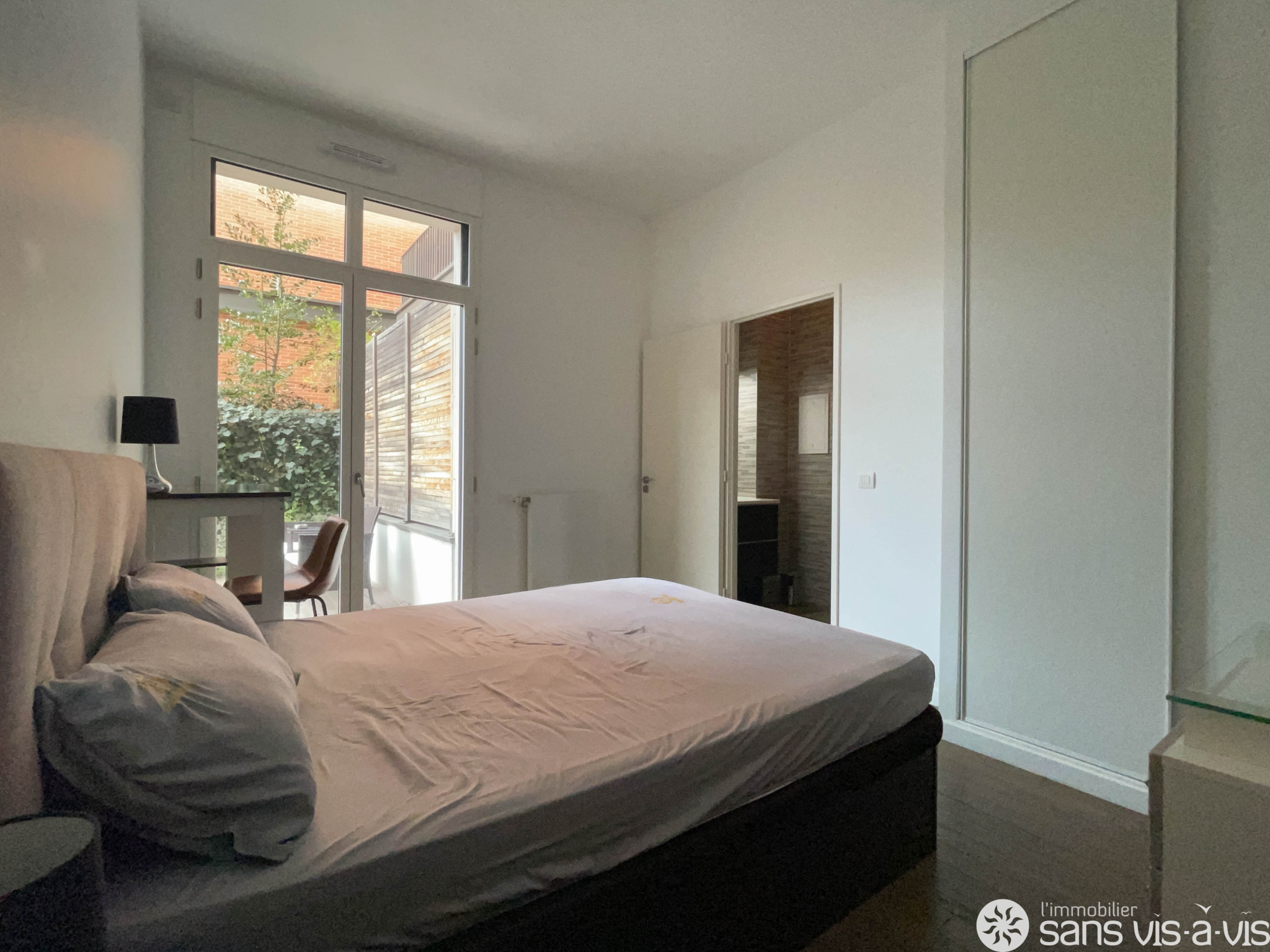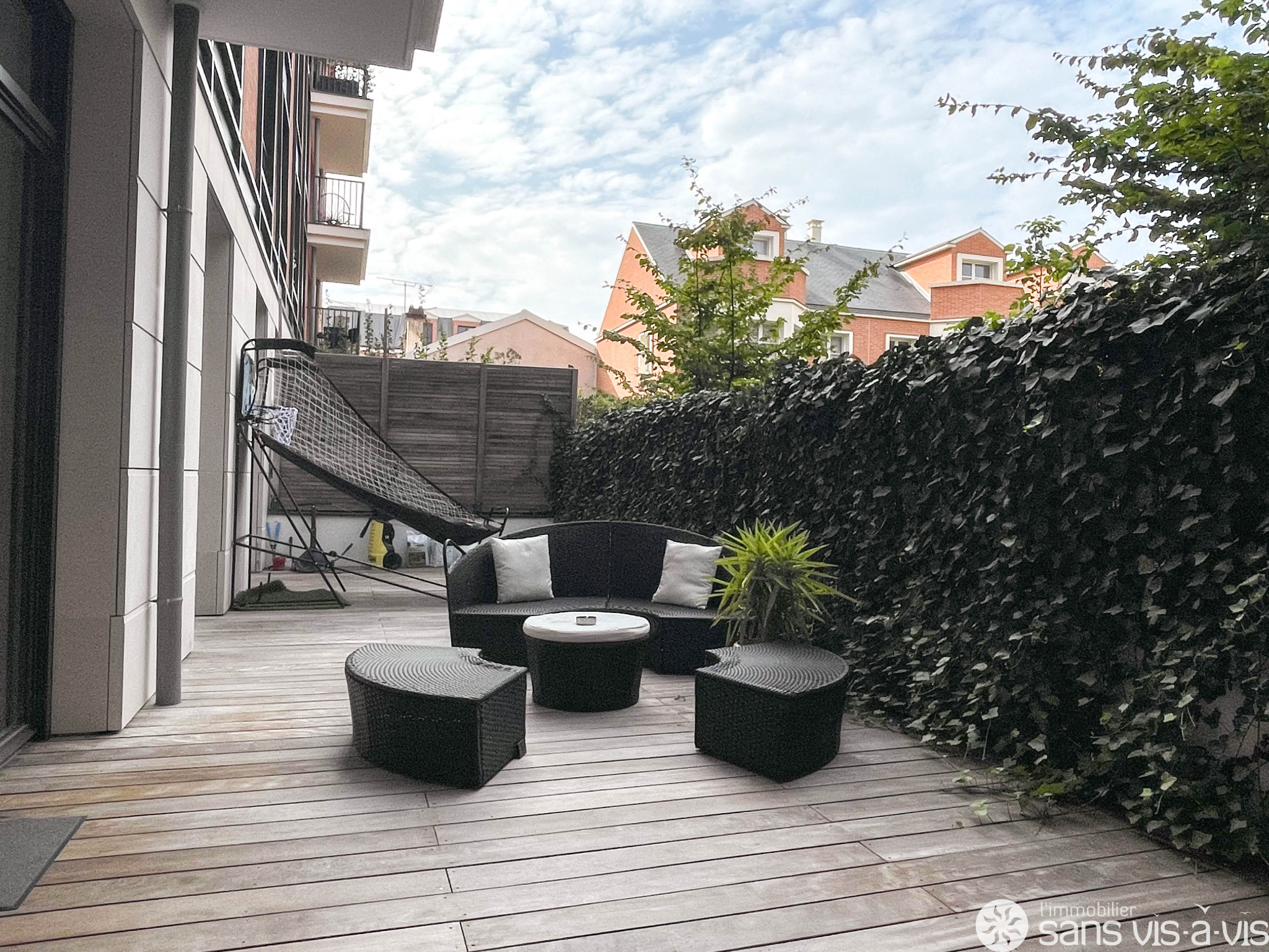 Les chambres, le séjour ainsi que la cuisine donnent sur une vaste terrasse de 43 m2 exposée Sud-Ouest.