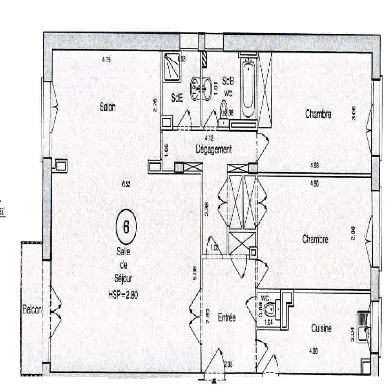 Dans un bel immeuble ancien avec ascenseur et gardien, appartement familial de 109 m2 comprenant : un double séjour donnant accès à un petit balcon, une cuisine fermée, 2 chambres (3 possible), une salle d'eau, une salle de bains et des WC.