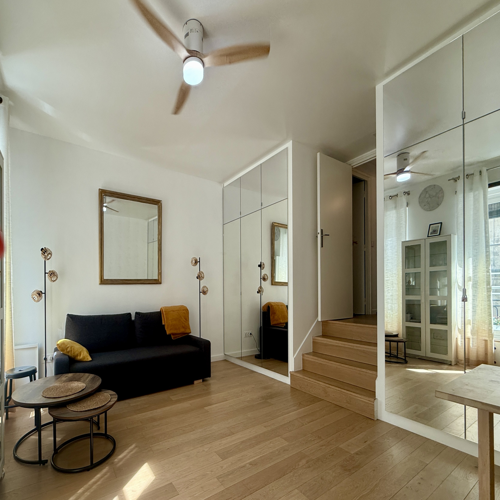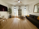 Très lumineux grâce à sa hauteur sous plafond de 2,85 m et ses fenêtres neuves à double vitrage, il offre tout le confort moderne : mobilier et électroménager récents (canapé-lit, télévision, réfrigérateur, lave-linge…). La cuisine séparée est entièrement équipée.