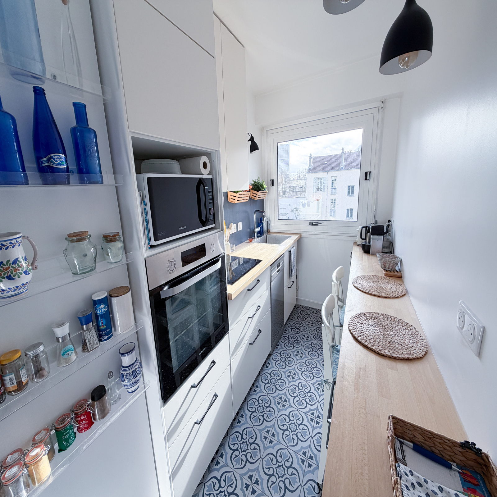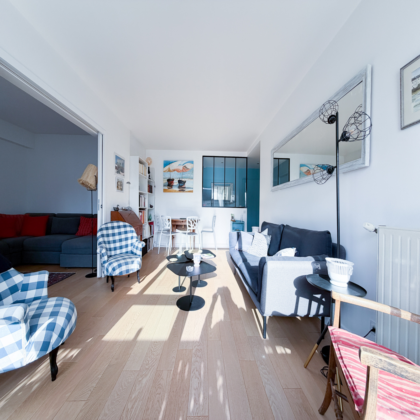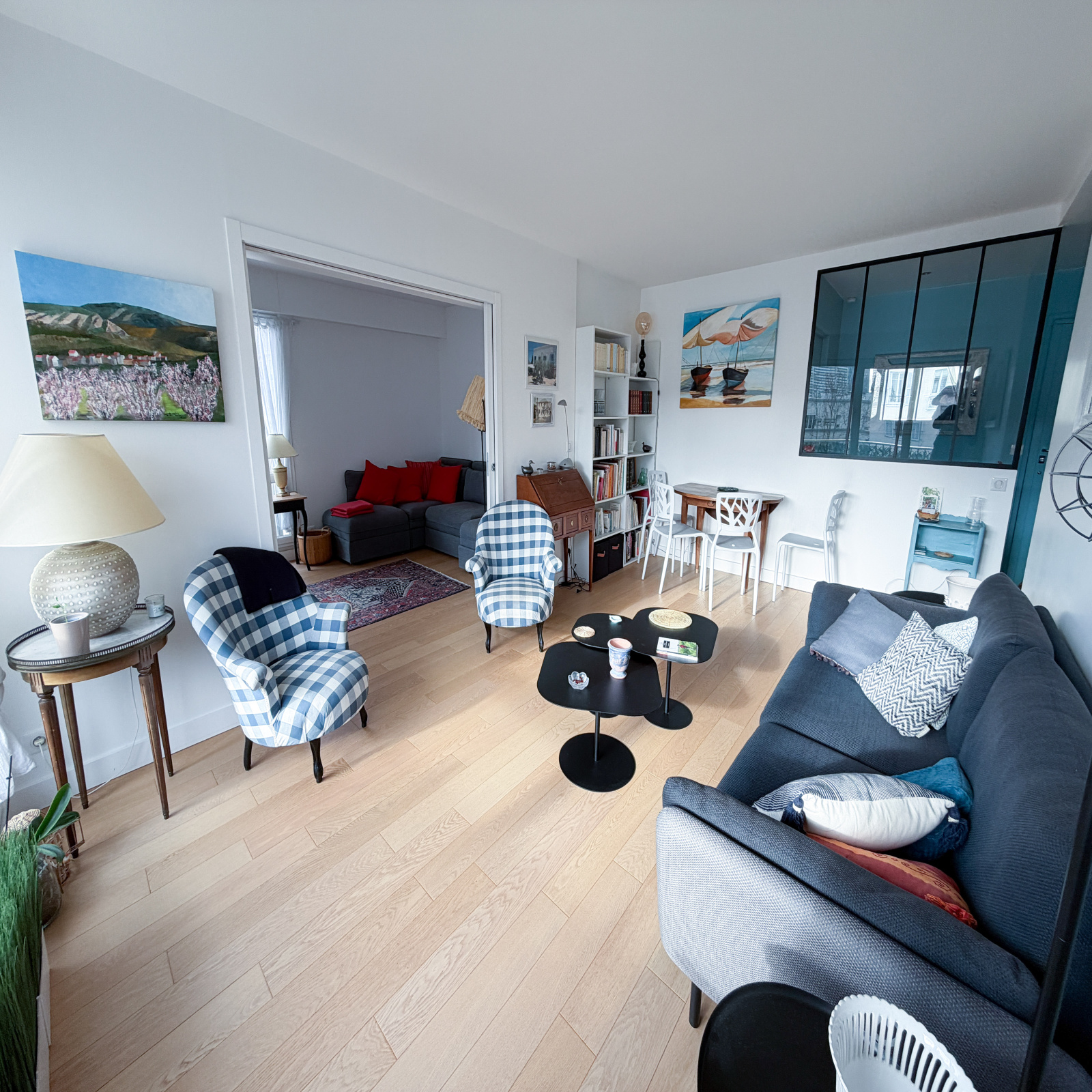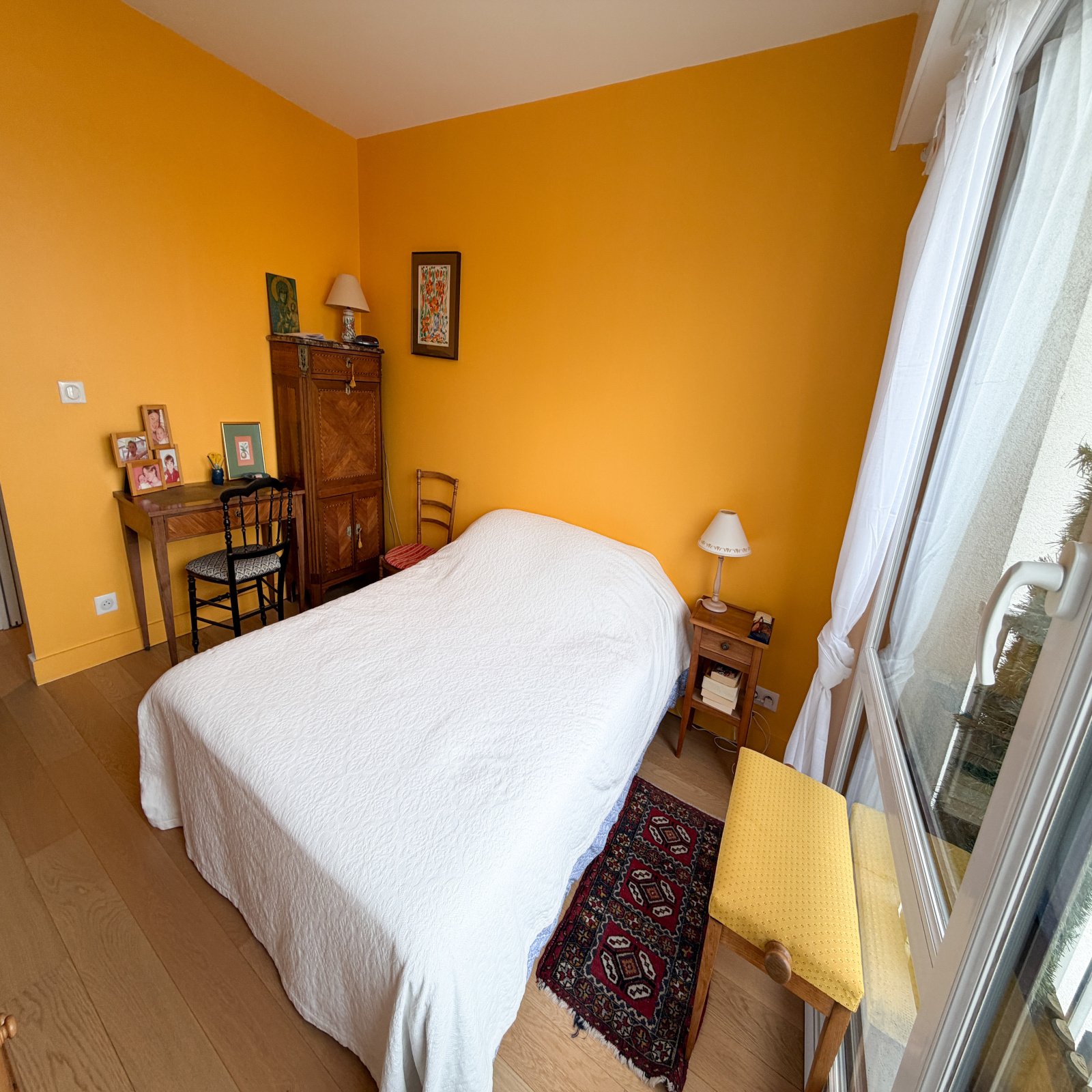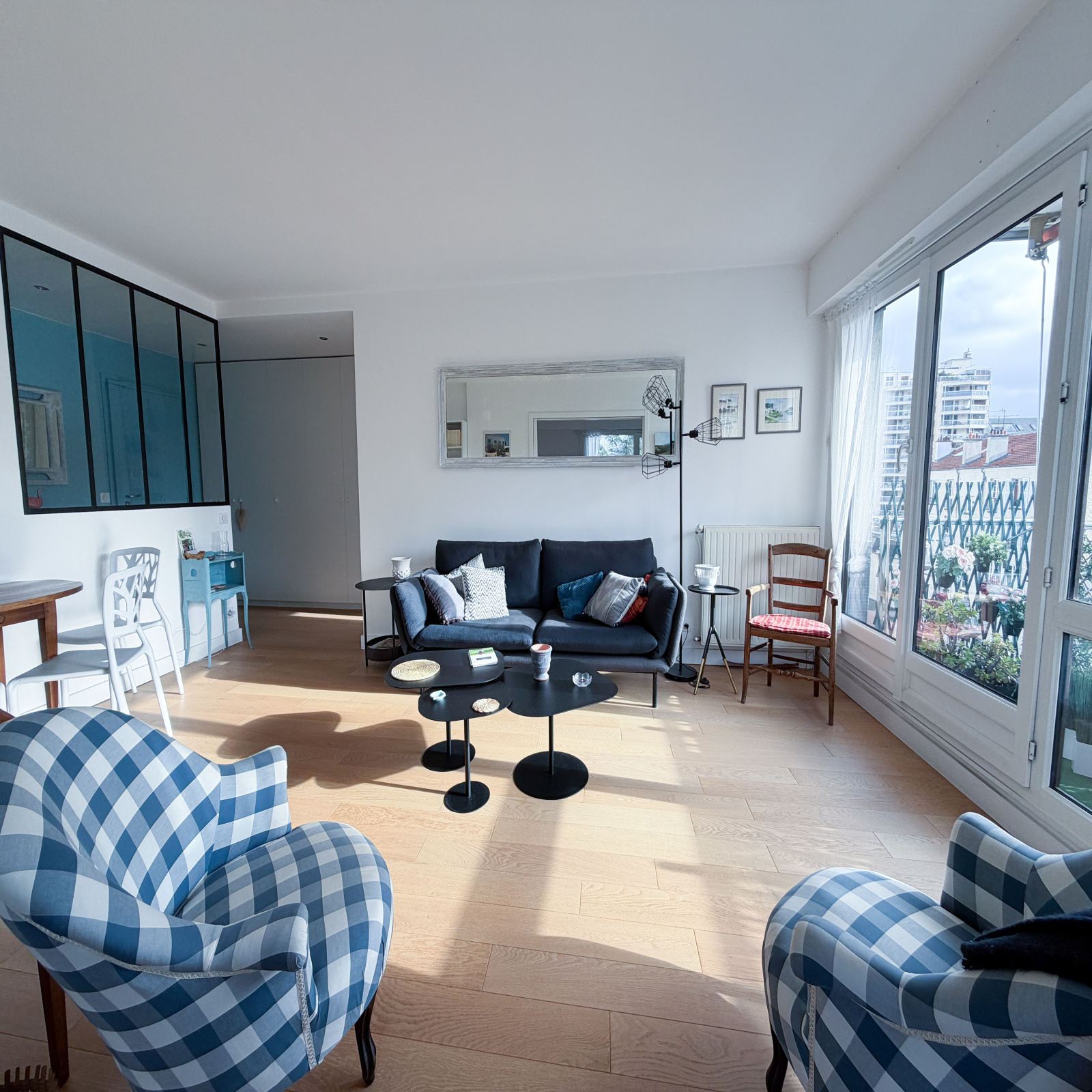 CENTRE VILLE - GARE DE COURBEVOIE- Appartement traversant de 3 pièces de 70m2 au dernier étage avec ascenseur; Il comprend, entrée, double séjour exposé SUD-OUEST donnant sur balcon, une cuisine aménagée (US possible), une chambre avec dressing (2eme chambre possible / plan d'origine), une salle d'eau, un wc séparé, une cave et un parking. L'appartement est en parfait état, il a été entièrement refait avec d'excellentes prestations (Double vitrage avec volets roulants electriques, parquet massif....). Située dans une copropriété bien entretenue, l'appartement profite d'un environement tres calme avec des espaces verts privatifs à la copropriété. Situé à 5mn à pied de la garde de Courbevoie (ligne L) et 15mn de la gare de "la Defense" (RER A, Metro, tramway, SNCF). Tous les commerces sont à proximité immédiate de la résidence. Charges de copropriété (315€/mois chauffage/eauchaude et froide inclus).