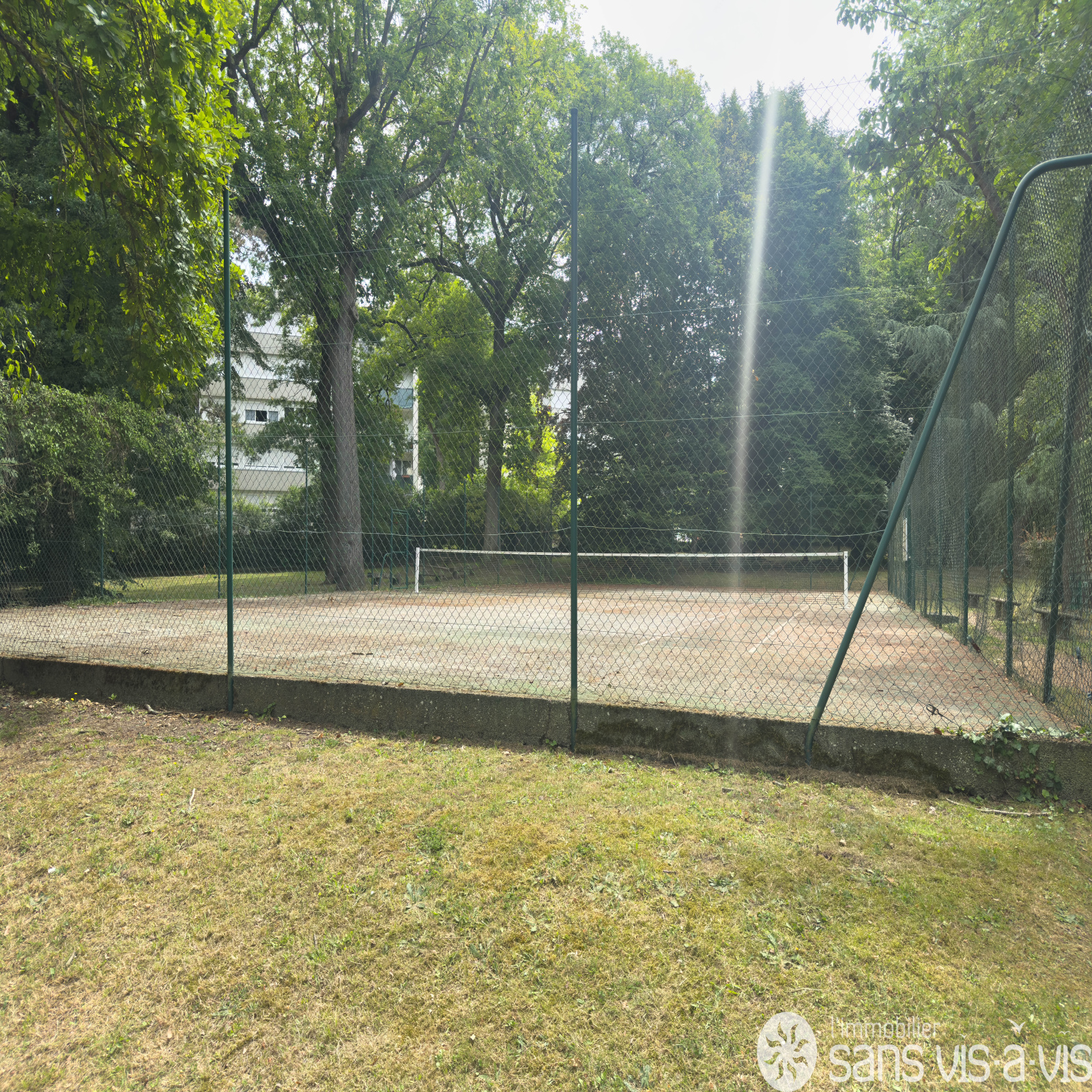 Dans une copropriété arborée avec espaces verts, cours de tennis et terrains de basket,