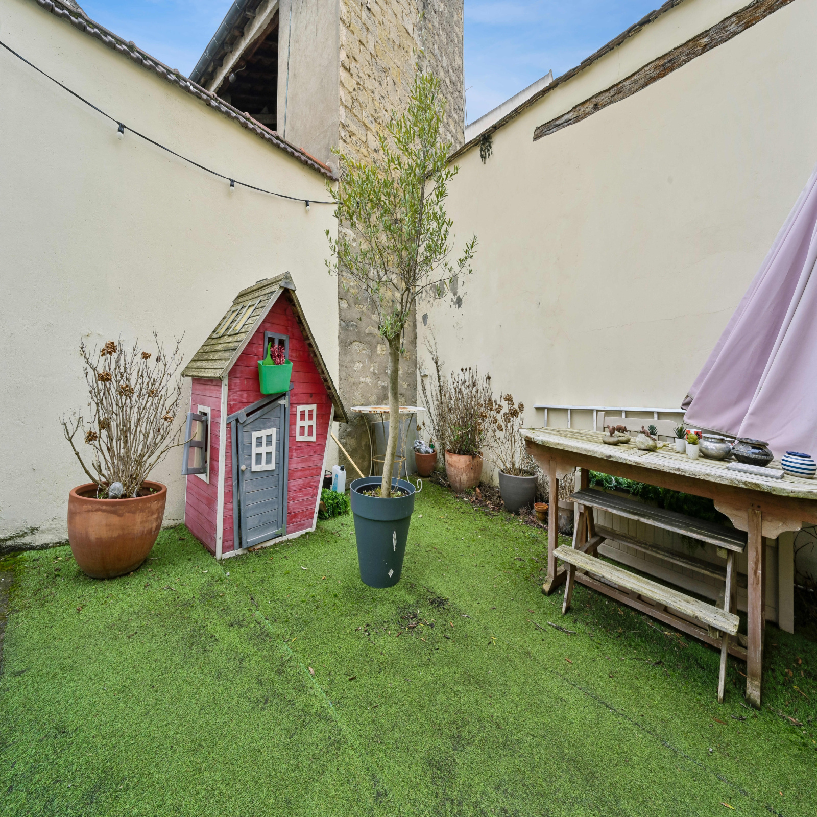 une cour privative clôturée par des murs, pouvant accueillir un véhicule (Portail éléctrique)