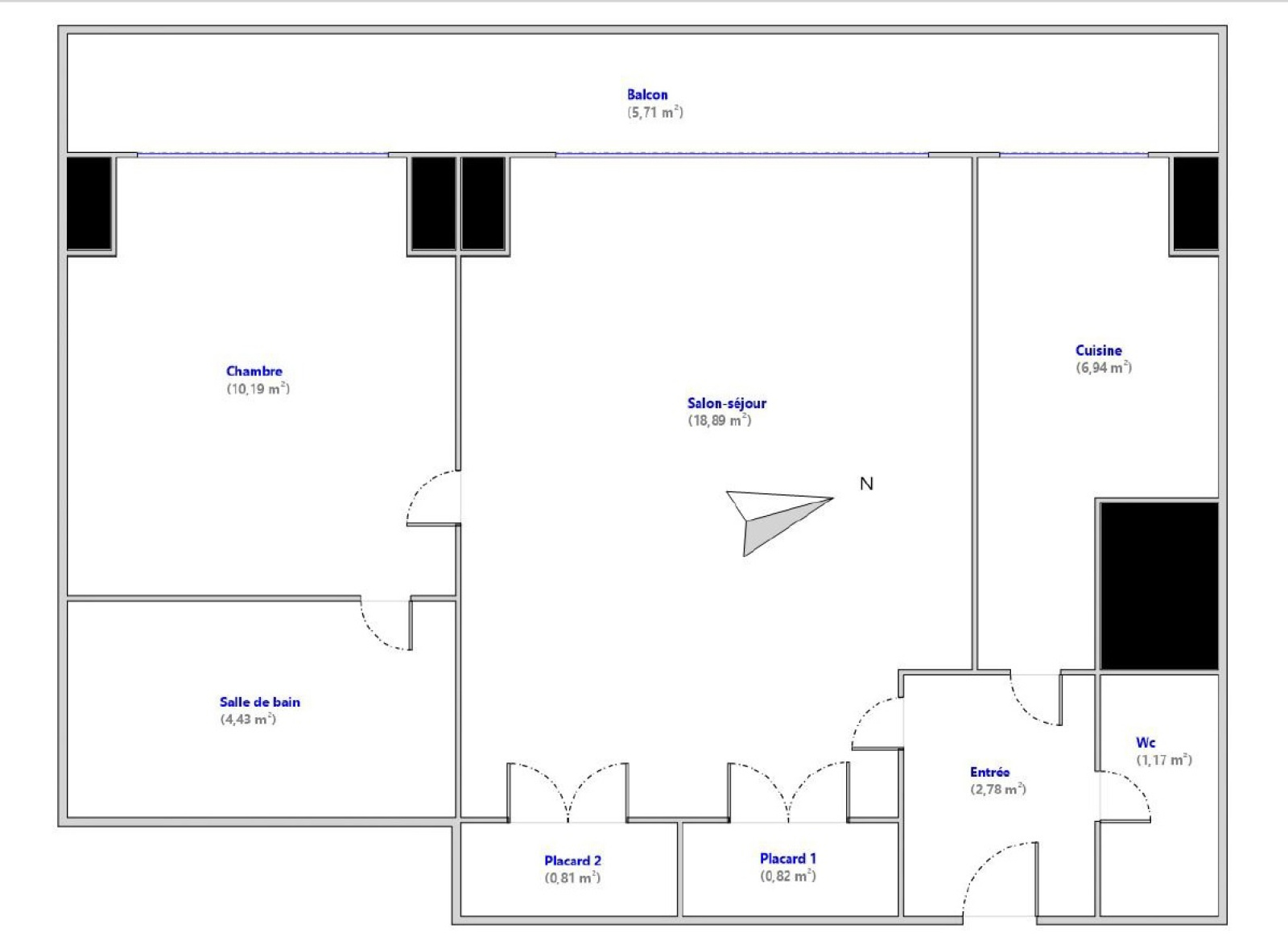 Il est composé d'un séjour lumineux donnant accès à un balcon filant, une cuisine (ouverture possible), d'une chambre, d'une salle de bains et de WC séparés.