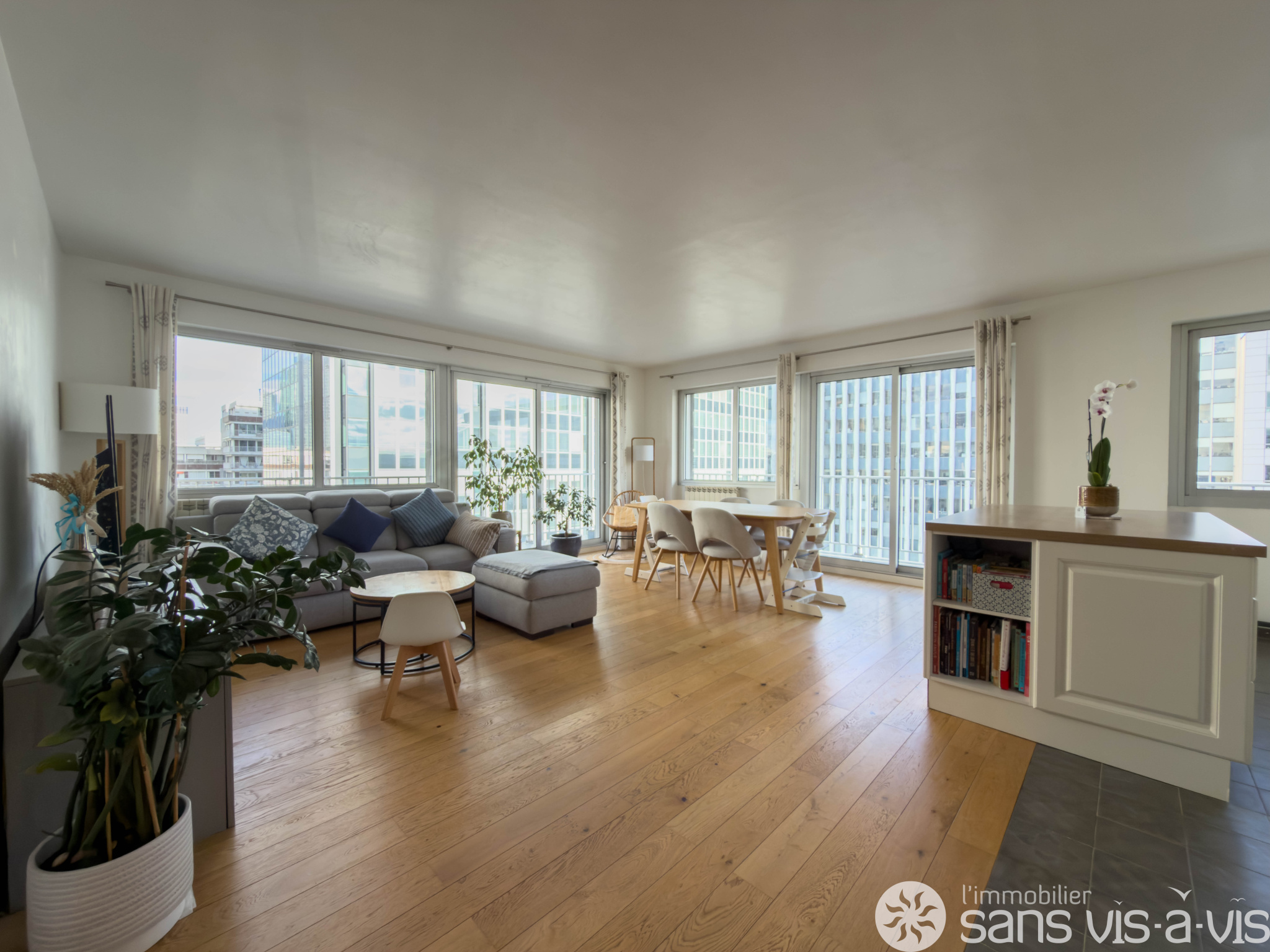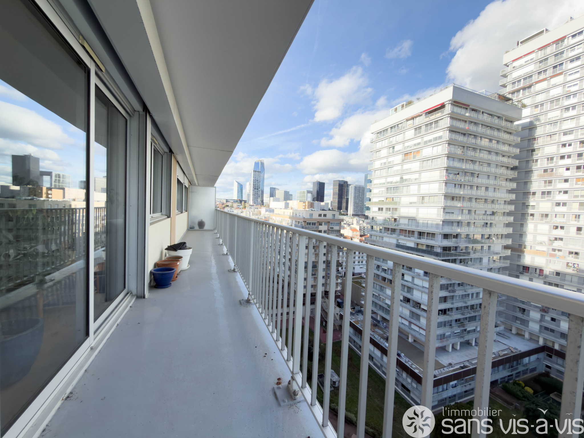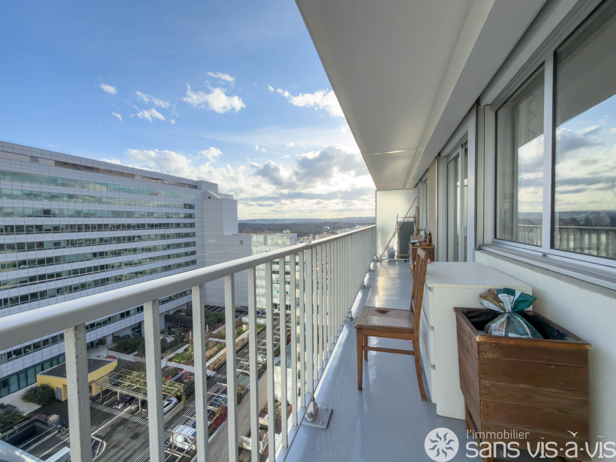 Cet appartement très lumineux, exposé sud, avec de nombreuses baies vitrées dispose d'un grand balcon de 22 m2 Situé au 11e étage avec ascenceur.