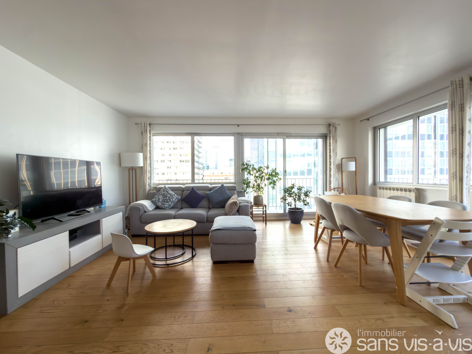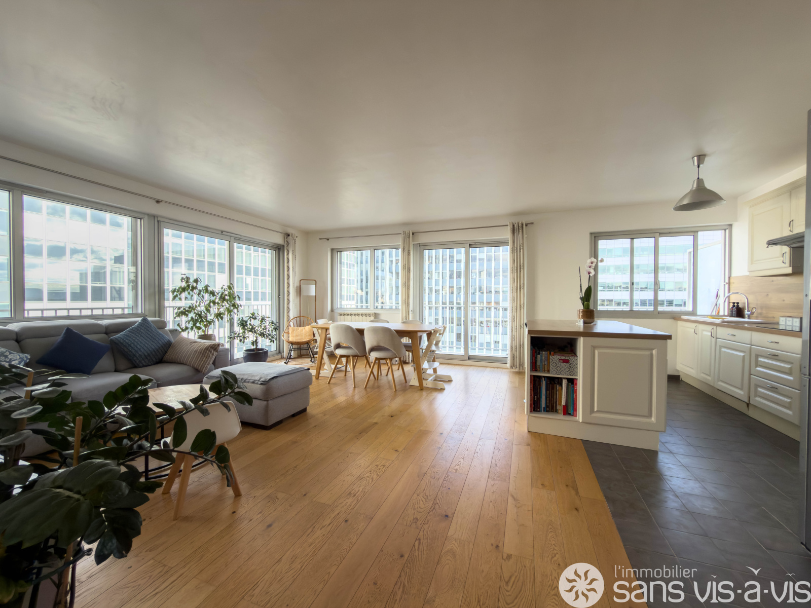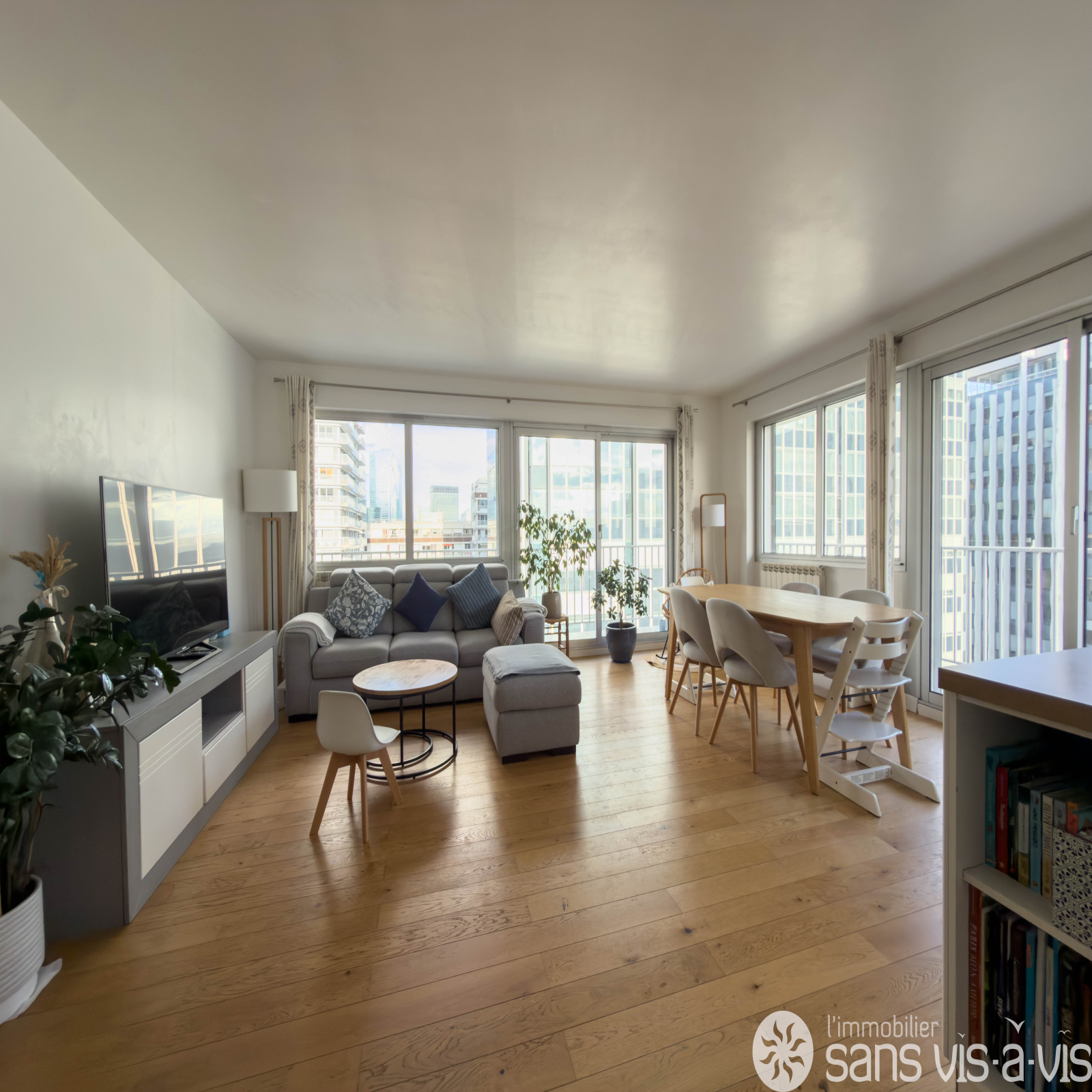 Cet appartement très lumineux, exposé sud, avec de nombreuses baies vitrées dispose d'un grand balcon de 22 m2 Situé au 11e étage avec ascenceur.