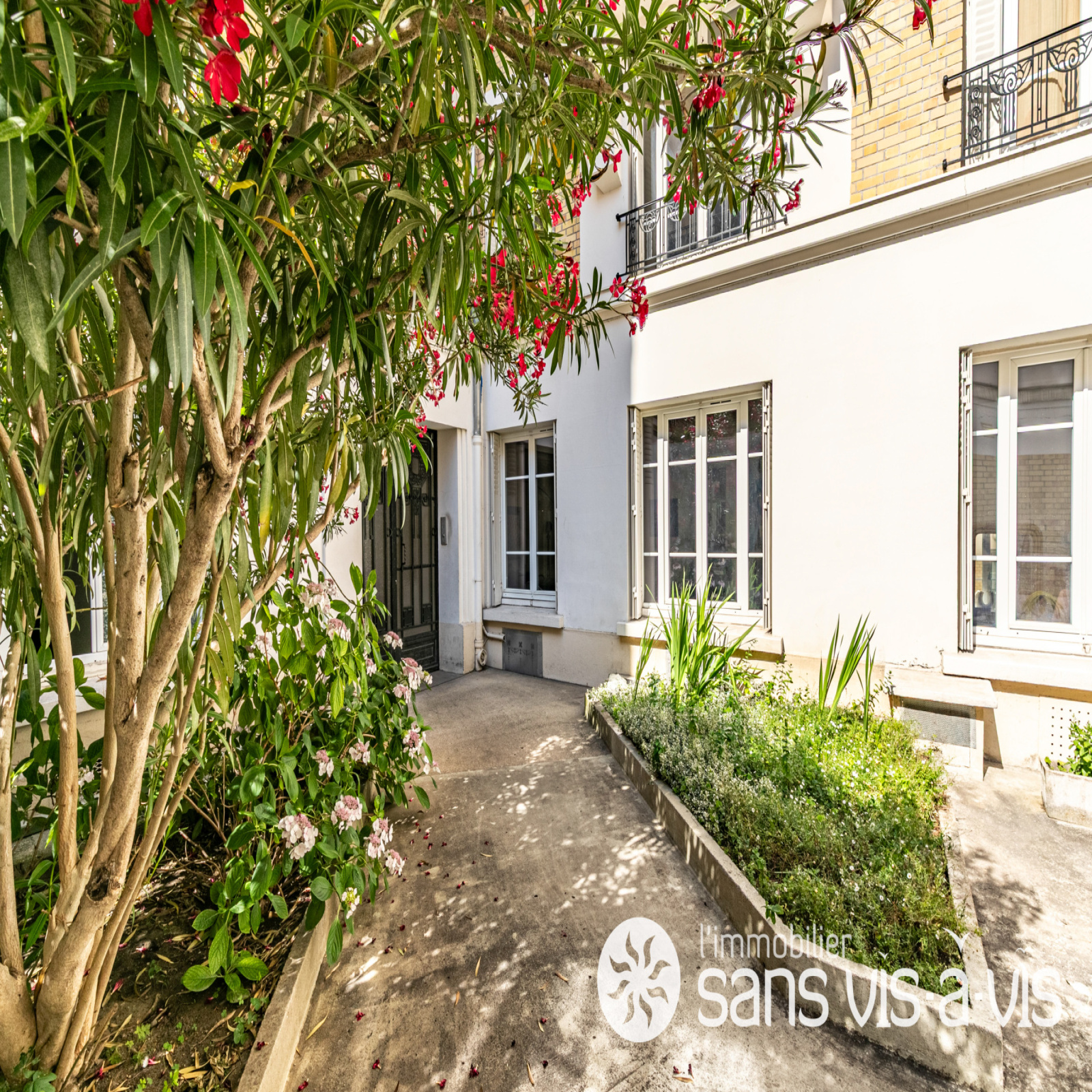 A 2 min de la GARE DE BECON dans BEL ANCIEN ravalé récemment AVEC GARDIEN , très beau 4p TRAVERSANT de 79m² au RDC donnant ENTIÈREMENT A L’INTÉRIEUR de la copropriété offrant : une entrée, un SEJOUR/SALLE A MANGER de 27m² et une 1ere CHAMBRE de 13m² DONNANT SUR LA COUR ARBORÉE DE LA COPROPRIETE exposé OUEST & cuisine aménagée, salle de bains AVEC FENETRE et une deuxième BELLE CHAMBRE de 11.50m² OUVRANT sur MAGNIFIQUE PETIT JARDIN PRIVE (du voisin) exposé EST, DRESSING et une cave de 6m² au s/sol. Charges mensuelles comprenant le chauffage de 230€;