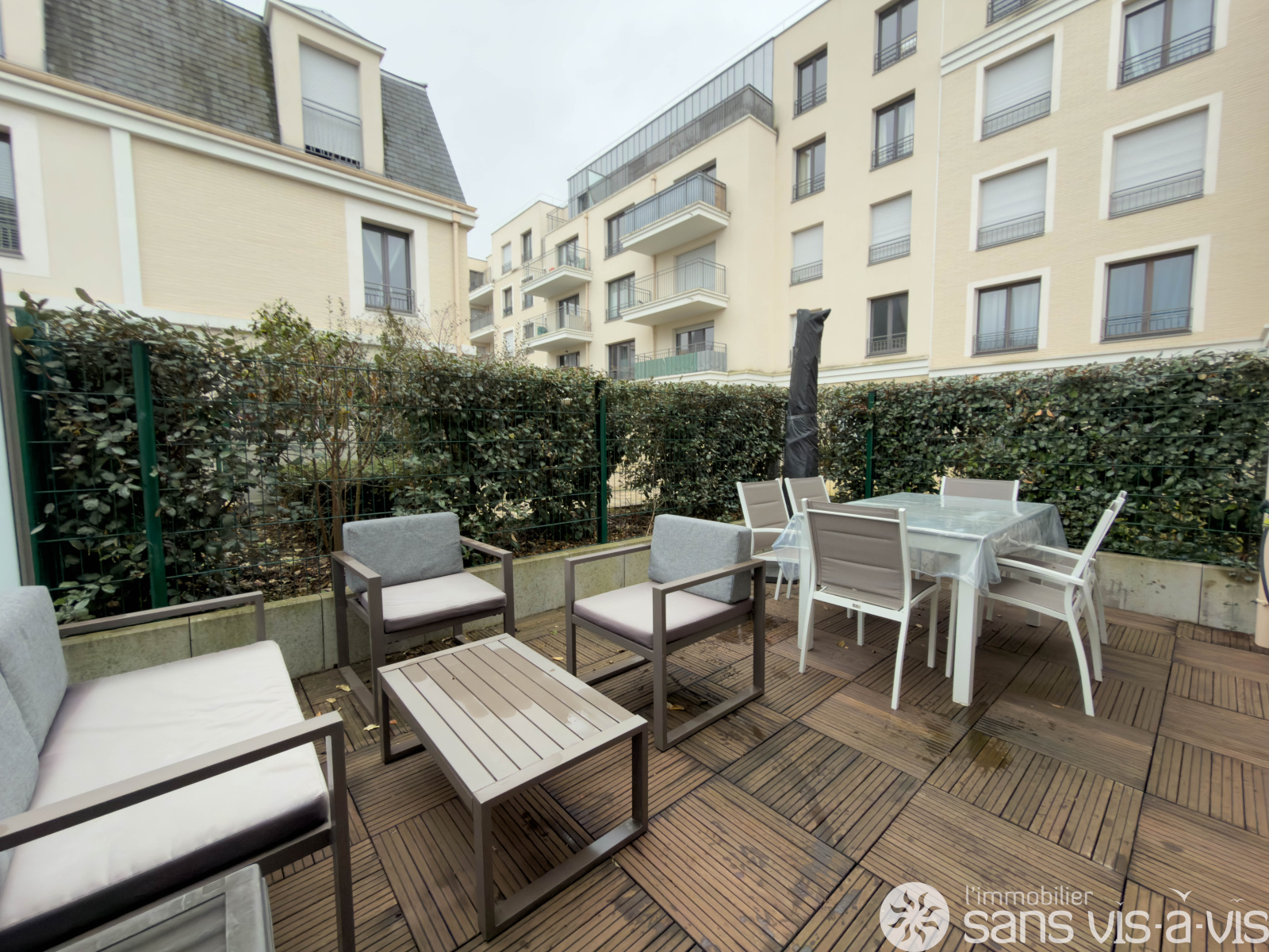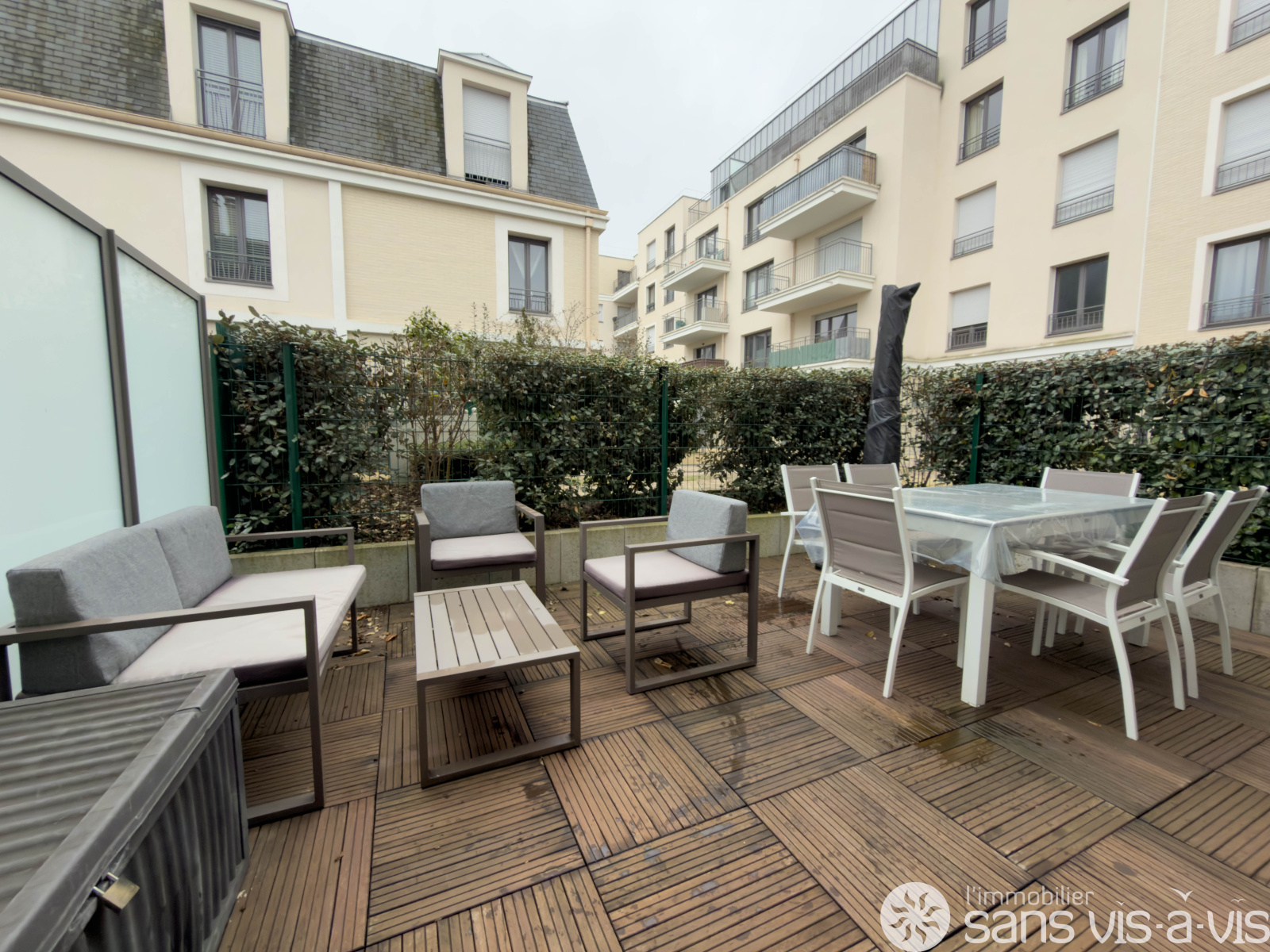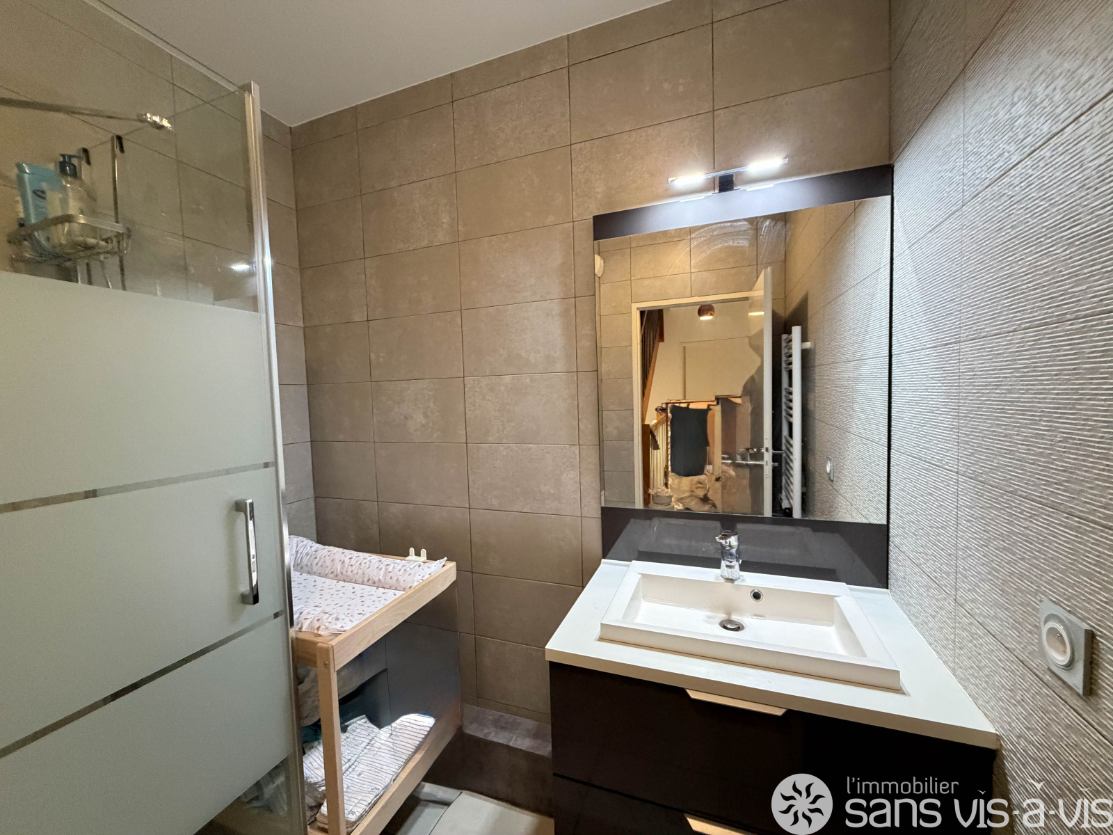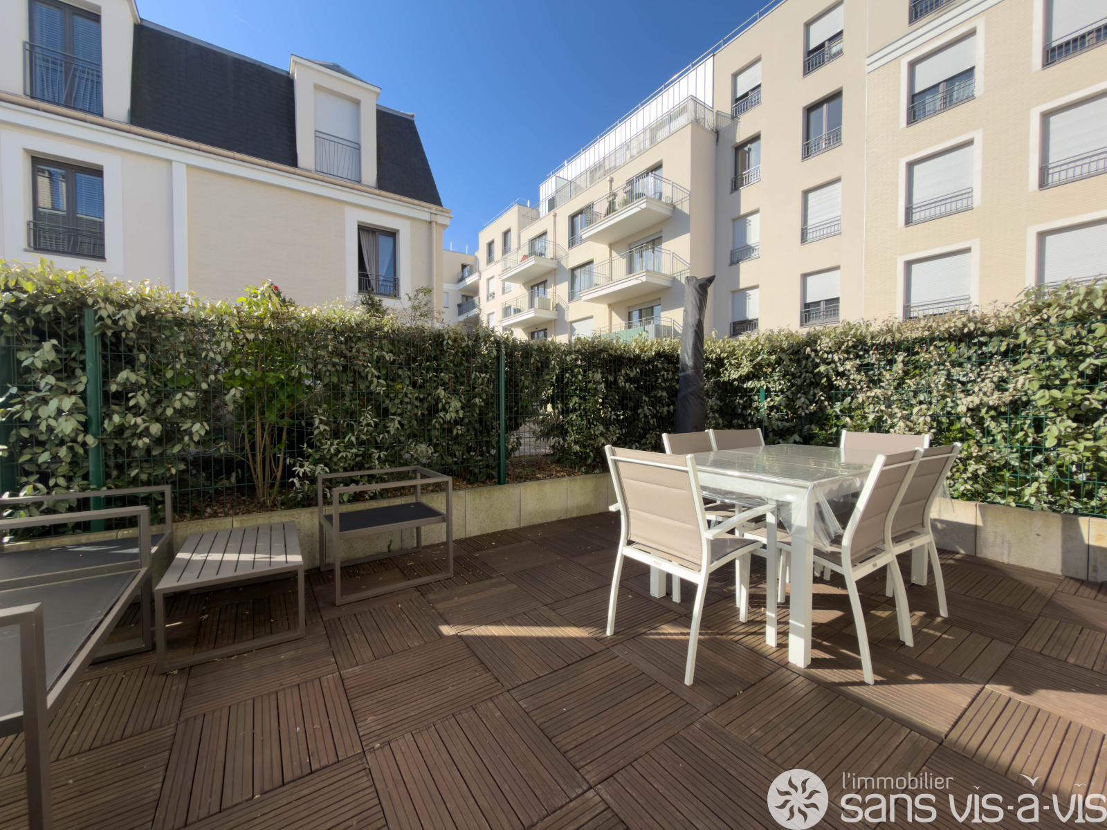 - Au RDC : un jardinet, une entrée, des WC, une grande pièce de vie avec cuisine ouverte donnant accès à une terrasse de 17m2 exposée sud ainsi que de nombreux rangements.