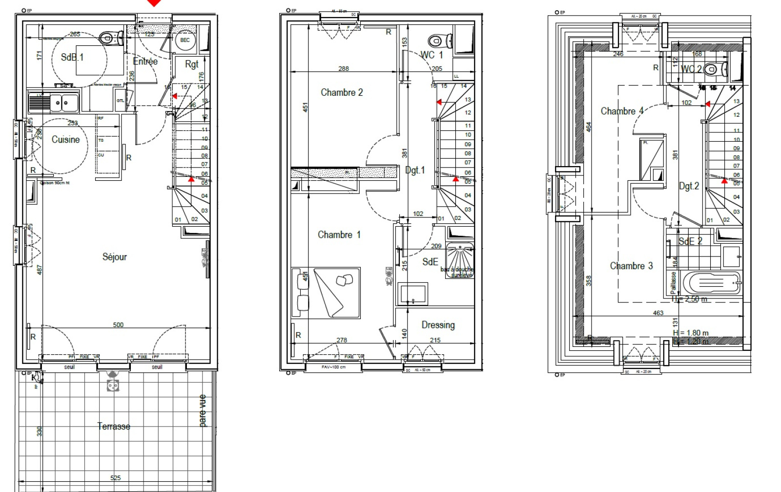 - Au 2ème étage : 2 chambres (10 et 11 m2), une seconde salle d'eau et des WC.