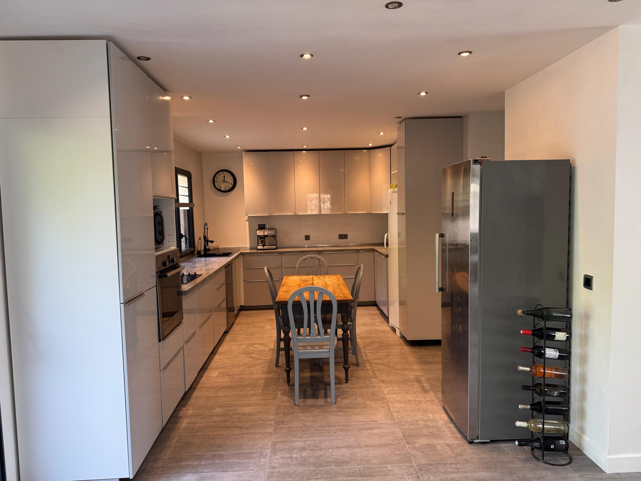 Verrières-le-Buisson (91370)Erigée sur une parcelle de 630m2, maison moderne (construction achevée fin 2018) comprenant : AU RDC : une entrée avec rangements, un grand séjour avec espace bibliothèque donnant accès de plain-pied au jardin, une cuisine dinatoire (la cuisine est désormais ouverte sur le séjour), une suite parentale (avec baignoire et douche) et des WC. Au 1er étage : 3 grandes chambres (dont une suite parentale), 2 salles de bains et 2 salles d'eau, un bureau et une buanderie. La suite parentale donne accès à 2 dressings. Au 2ème étage : 2 grandes chambres, une salle d'eau, une salle de jeux/cinéma, une salle de musculation. Au sous-sol : 2 garages indépendants (dont un double), 2 salles de jeux / salon, un cellier, un local technique et des WC. Dans le quartier recherché du lac de Verrières, au calme, proche des commerces et des établissements scolaires. Maison lumineuse avec des prestations de qualité. Ce bien vous est proposé par l'agence l'Immobilier sans vis-à-vis. Votre contact : Pierre THEVENIN : 06.68.96.07.07