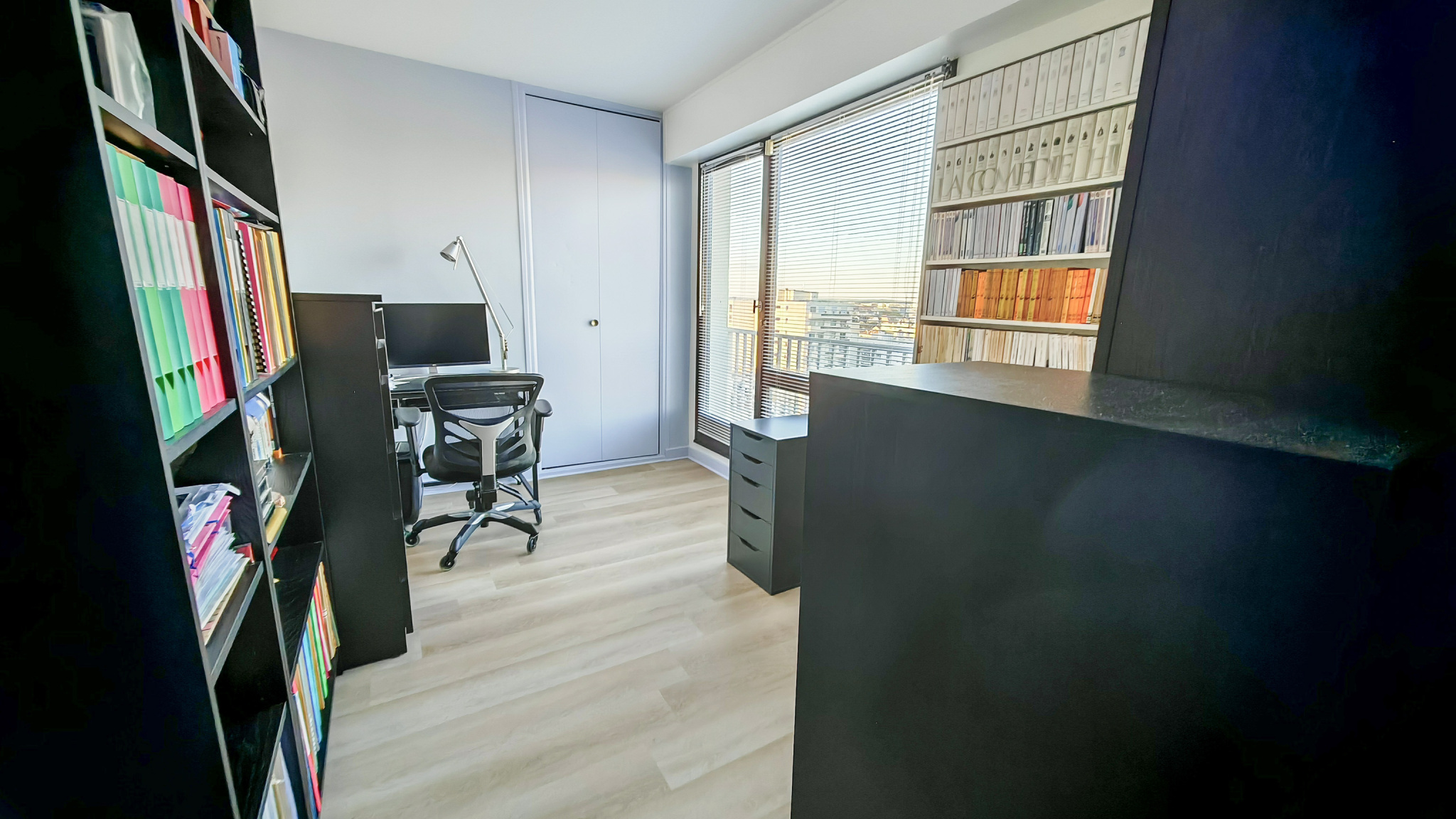 Courbevoie (92400)CENTRE VILLE - COURBEVOIE GARE - Appartement Familliale de 99m2 EN DERNIER ETAGE avec ascenseur. Il comprend, entrée (5,12m2), séjour donnant sur balcon exposition SUD avec VUE PANORAMIQUE ( 20m2 / double séjour possible en ouvrant sur la chambre mitoyenne), cuisine (9,52m2 / Cuisine US possible), 4 chambres (12,83m2 / 10,79m2 / 10,81m2 / 12,60m2), une salle de bains (3,57m2), une salle d 'eau (3,57m2), un wc séparé, placards, une cave et un PARKING BOX en sous-sol. Au sein d'une copropriété bien entrétenue, calme et arborée à proximité immédiate de toutes les commodités (Gare de courbevoie à 5mn à pied). Appartement TRAVERSANT, lumineux et bien agencé, il est possible de reconfigurer la piece de vie en ouvrant la cuisine et l'entrée sur le séjour (34m2) et d'y ajouter la chambre mitoyenne (46m2 au total). Charges de copropriété 465€/mois (Chauffage, eau chaude et eau froide inclus). Copropriété de 320 logements.