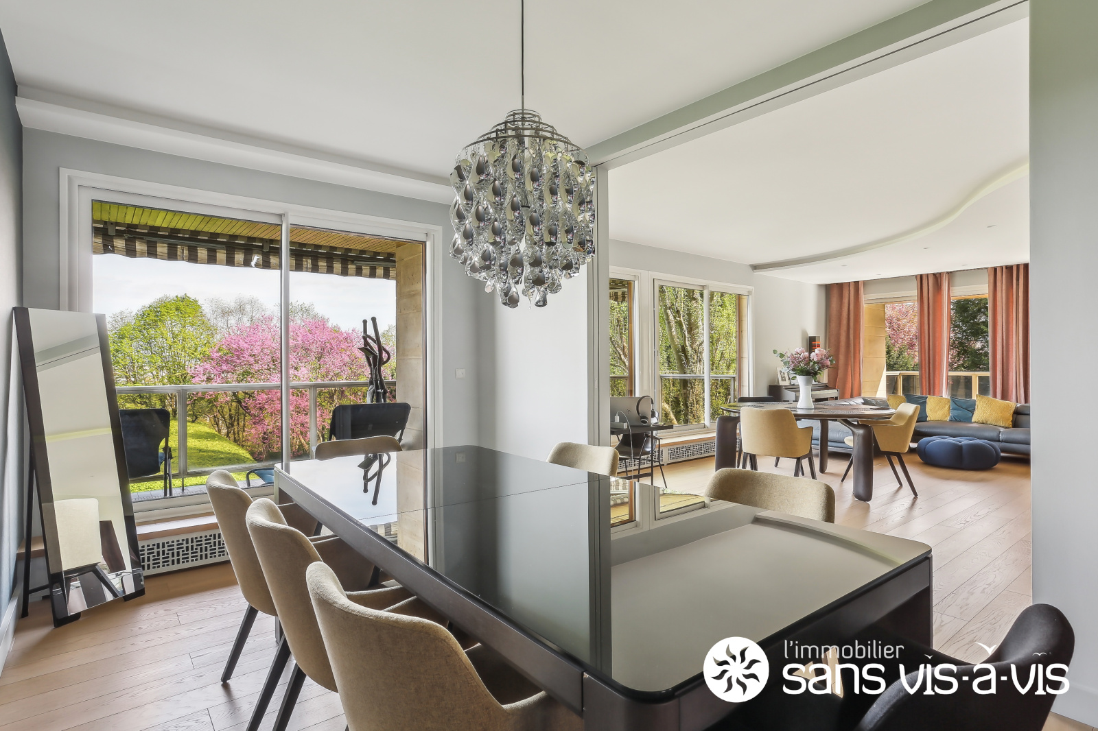 Saint-Cloud (92210)Appartement de grand standing de 147 m2 entièrement rénové par un architecte. Au coeur de la résidence du Parc de Béarn, au 2ème étage avec ascenseur, avec une vue panoramique sur 180 degrés qui balaie Paris depuis la Défense, jusqu'aux collines de Meudon, en passant par le bois de Boulogne, la Seine et la Tour Eiffel. Evasion garantie depuis les balcons d'une surface totale de 35 m2 où vous serez à l'abri des regards.